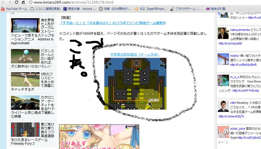 1、すずぬーとのホームページで、「宇宙害虫駆除基地」をクリック。すると小太郎ブログにとぶ。